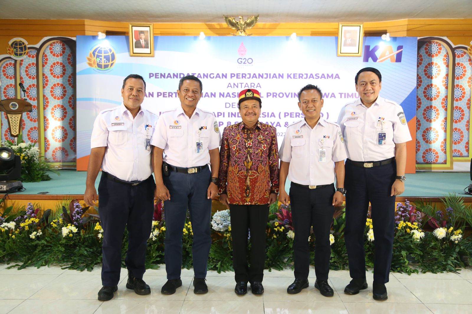 SR, Surabaya – Tiga Kepala Daerah PT Kereta Api Indonesia (KAI) yang wilayah kerjanya berada di Provinsi Jawa Timur, yaitu Daop 7 Madiun, Daop 8 Surabaya dan Daop 9 Jember menandatangani Perjanjian Kerja Sama (PKS) dengan Badan Pertanahan Nasional (BPN) Provinsi Jawa Timur, tentang pendaftaran/pensertifikatan tanah dan penanganan permasalahan tanah aset PT Kereta Api Indonesia di Ruang Aula Reforma Agraria Kantor Wilayah BPN Provinsi Jawa Timur, Senin (10/10/2022).