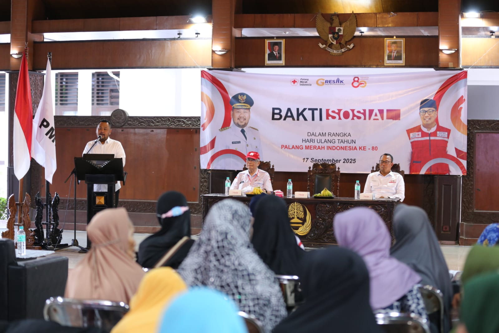 Rangkaian kegiatan kemudian berlanjut di Pendopo Rumah Dinas Bupati Gresik. Suasana semakin hangat dengan hadirnya jajaran PMI Jawa Timur, antara lain, Dewan Kehormatan PMI Jatim, Supriyanto, Wakil Ketua PMI Jatim, Subagio, serta Ketua Bidang Relawan PMI Jatim, Zainal Abidin. Dari Kabupaten Gresik, turut hadir Ketua PMI Gresik H. Achmad Nadlir beserta jajaran pengurus PMI Kabupaten Gresik.