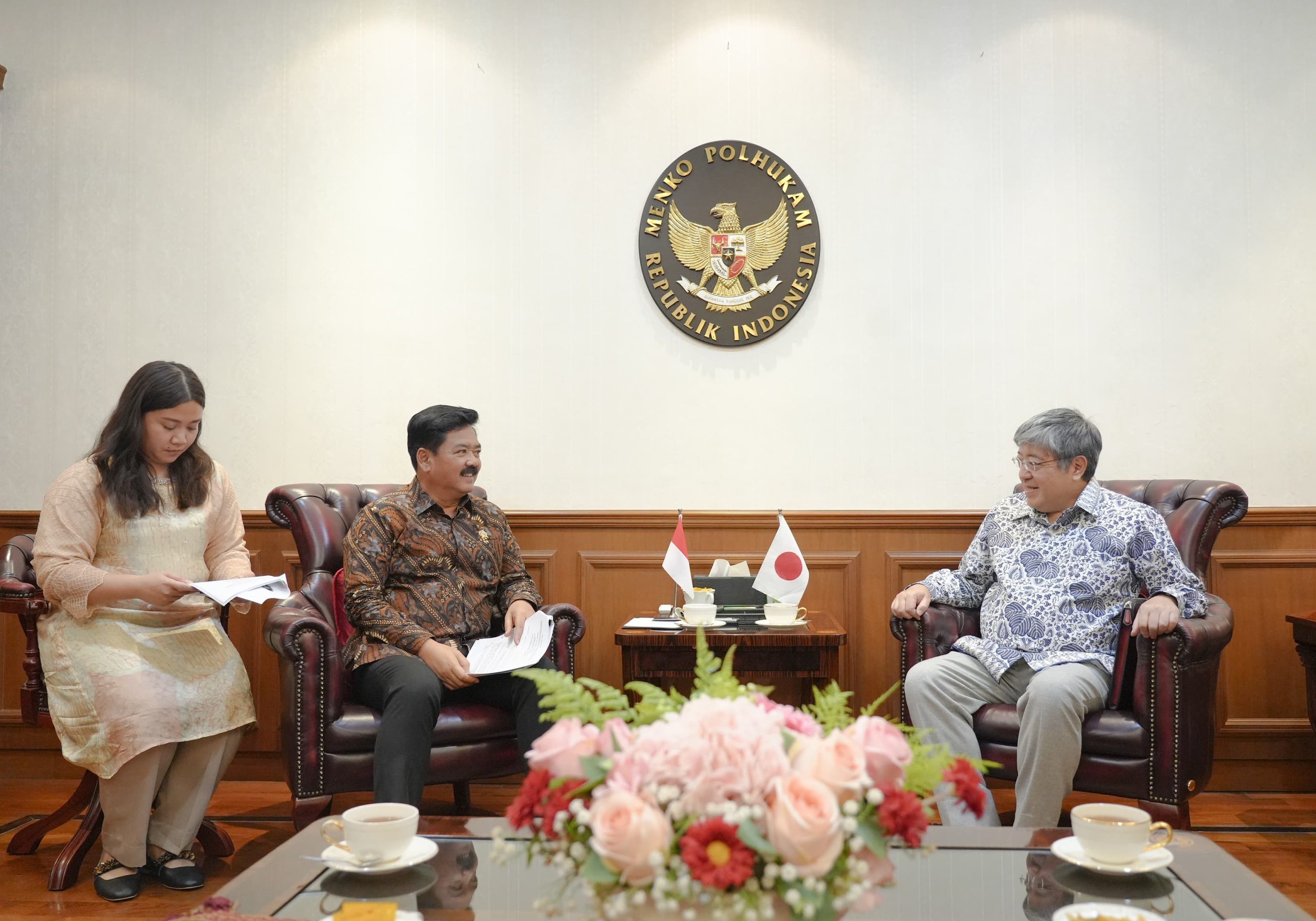 Saat menerima kunjungan kehormatan Dubes Jepang untuk Indonesia H.E. Masaki Yasushi beserta jajaran, Menko Polhukam menggarisbawahi hubungan baik antara Indonesia dengan Jepang yang telah terjalin selama 66 tahun.