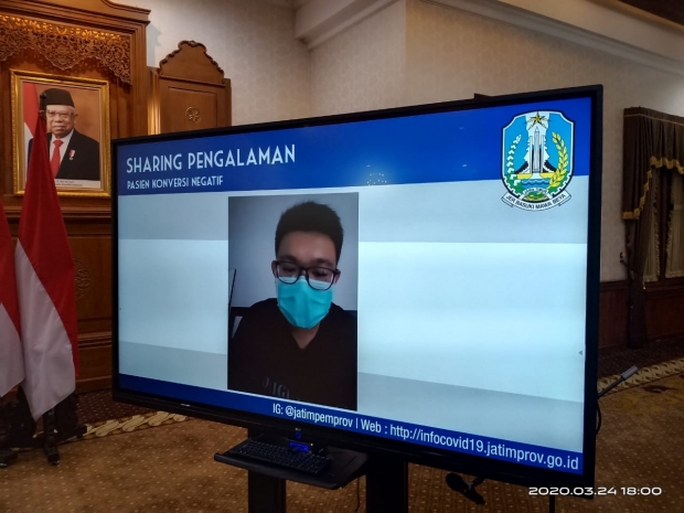 SR, Surabaya – Dokter Markus adalah salah satu pasien dan tenaga medis Anestesi Rumah Sakit Dr Soetomo Surabaya yang dinyatakan sembuh. Hal itu disampaikan melalui video rekaman yang diputar saat konferensi pers, di Gedung Negara Grahadi, Selasa(24/3/2020).