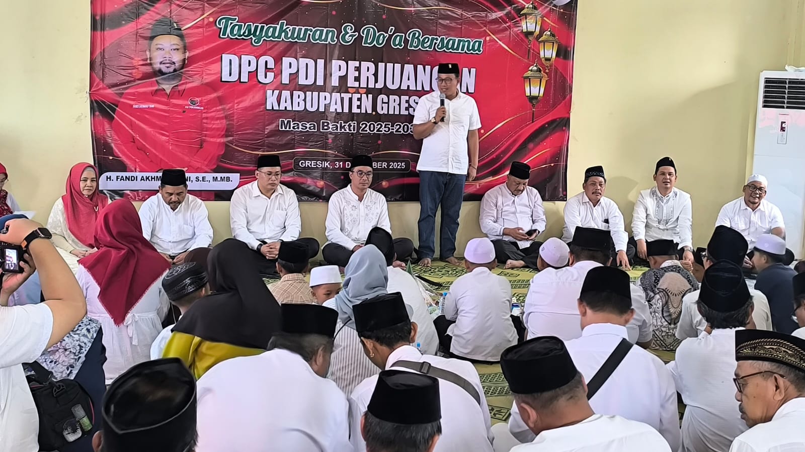 Wakil Ketua Bidang Keagamaan DPC PDI Perjuangan Gresik, H. Nasikhul Khakim mengatakan, tasyakuran dan doa bersama ini untuk gresik ke depan, sekaligus sebagai sebagai refleksi 2025 menuju 2026.