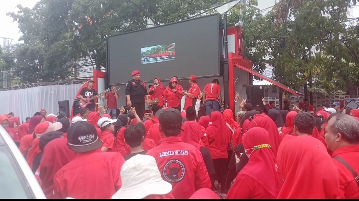 Pendaftaran dilakukan Rabu (28/8/2024) diiringi 18 partai politik pengusung, relawan, dan segenap pengurus DPC PDI Perjuangan Surabaya.