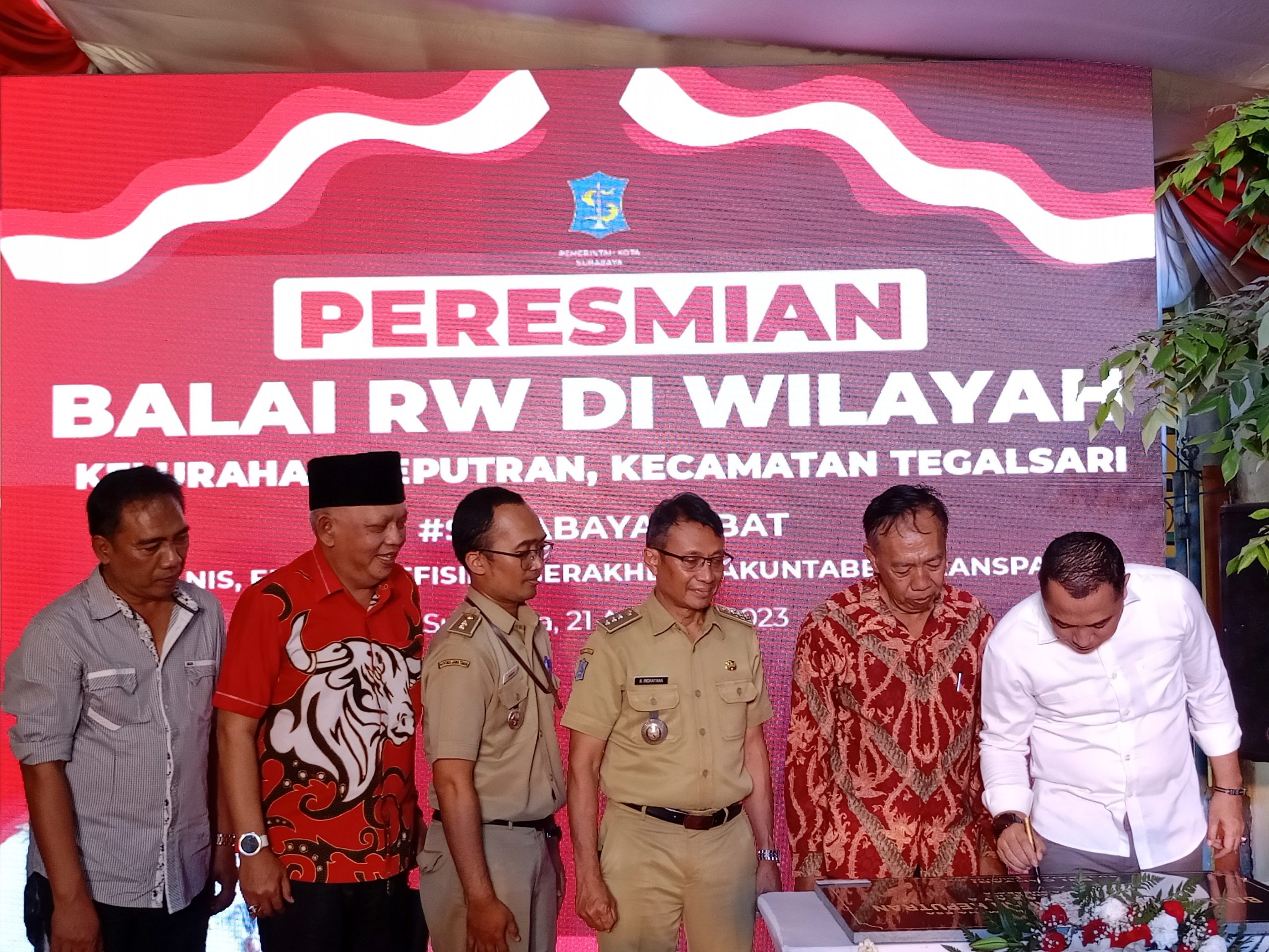 SR, Surabaya – Wali Kota Surabaya, Eri Cahyadi meresmikan Balai RW 5, Kelurahan Keputran, Kecamatan Tegalsari, Surabaya, Senin (21/8/2023). Peresmian ini dilakukan setelah Pemerintah Kota (Pemkot) selesai melakukan perbaikan atau renovasi pada 1.159 Balai RW di Kota Pahlawan.