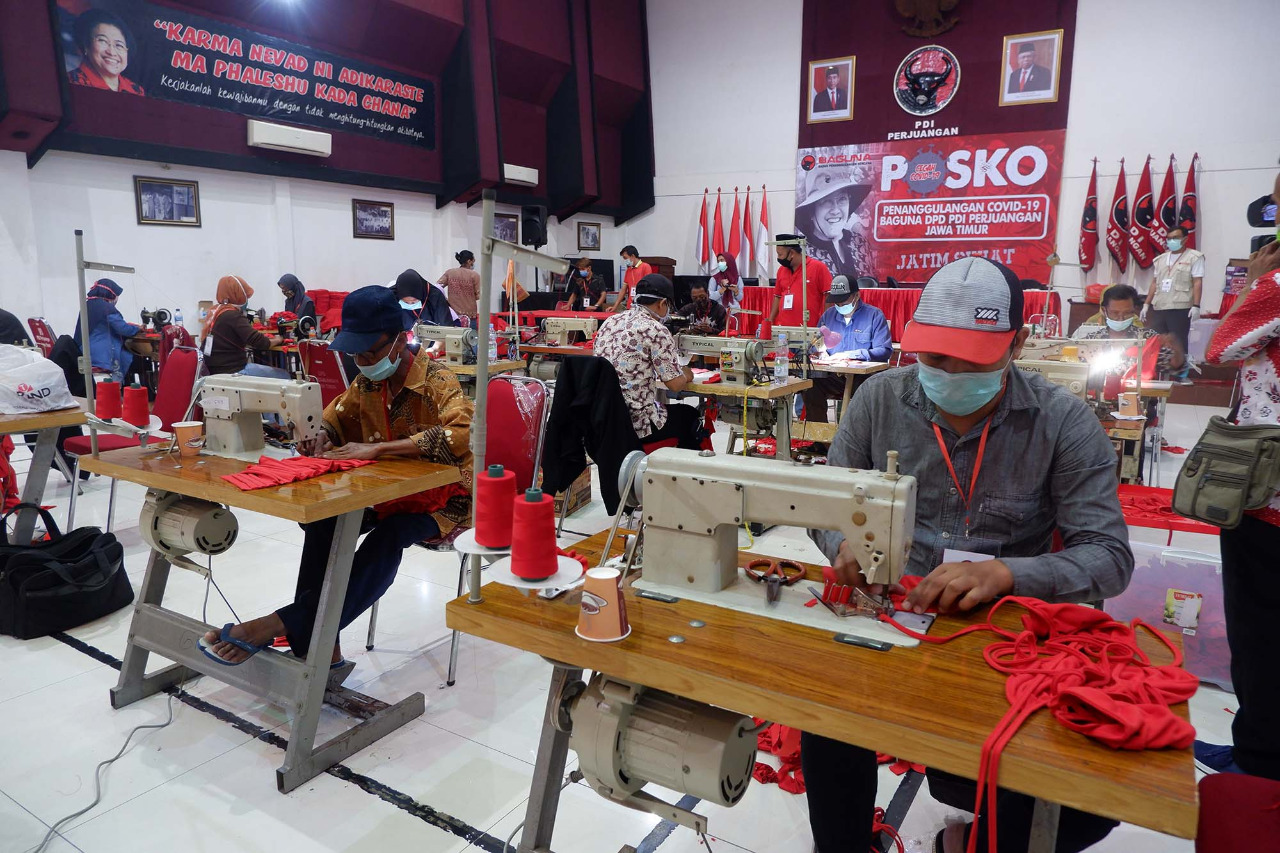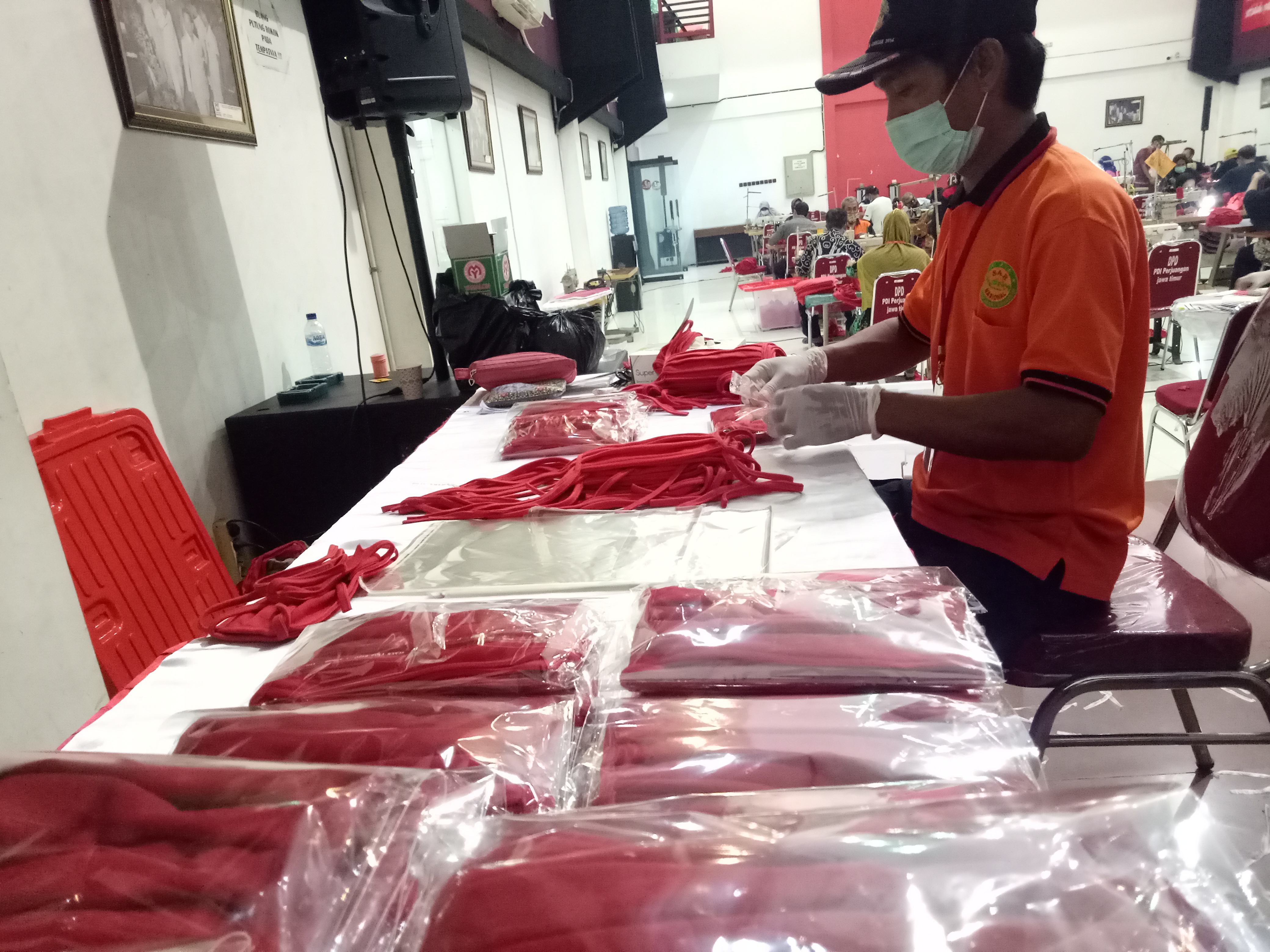 Kepala Badan Penanggulangan Bencana (Baguna) DPD PDI PDI Perjuangan Jatim SW Nugroho menambahkan, untuk pembuatan masker pihaknya melibatkan sekitar 50-an penjahit.