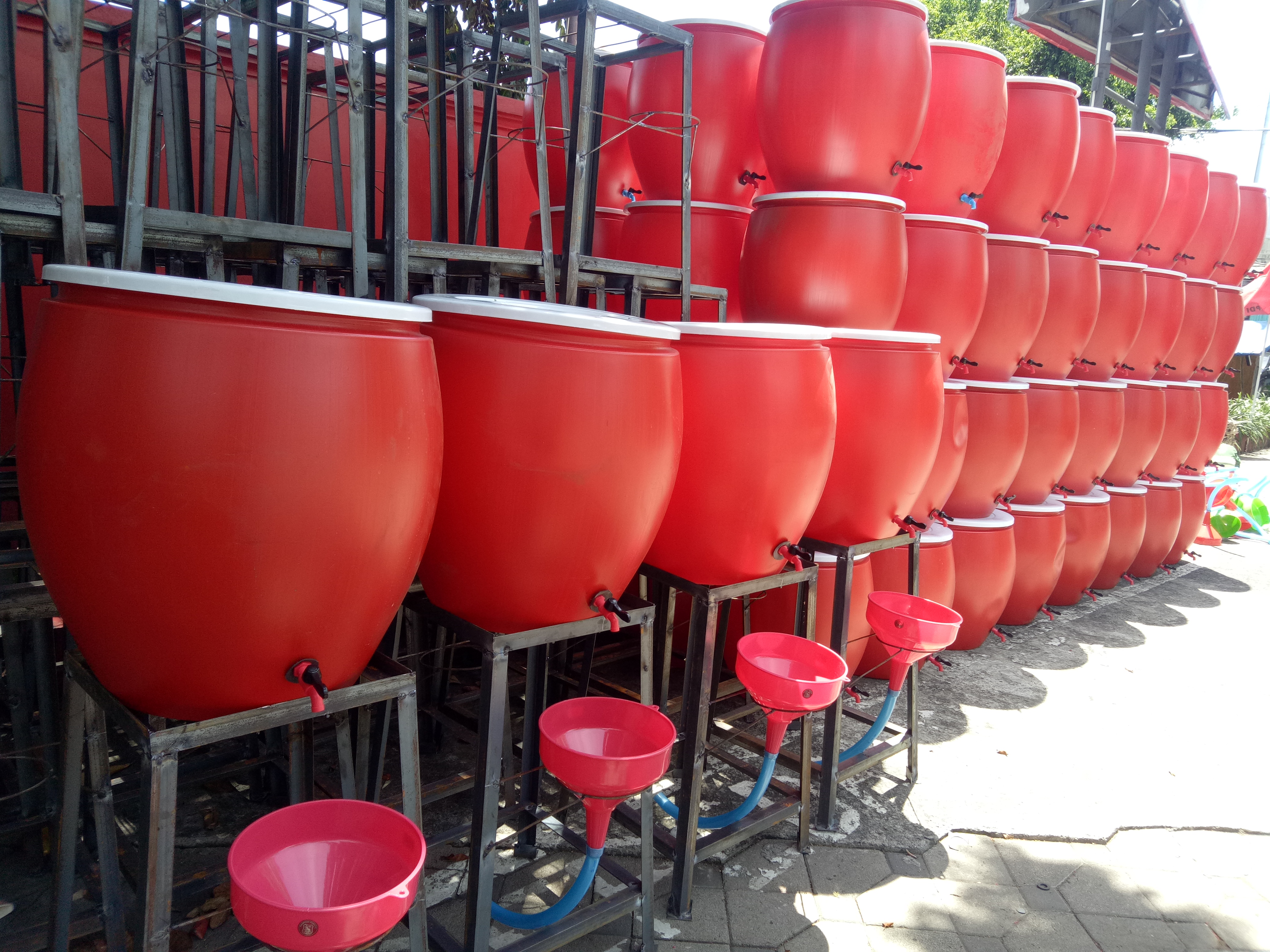 Sarana tempat cuci tangan ini dibuat lengkap, yakni gentong air kapasitas 120 liter lengkap beserta kran air dan rangka dudukan dari bahan plat besi.