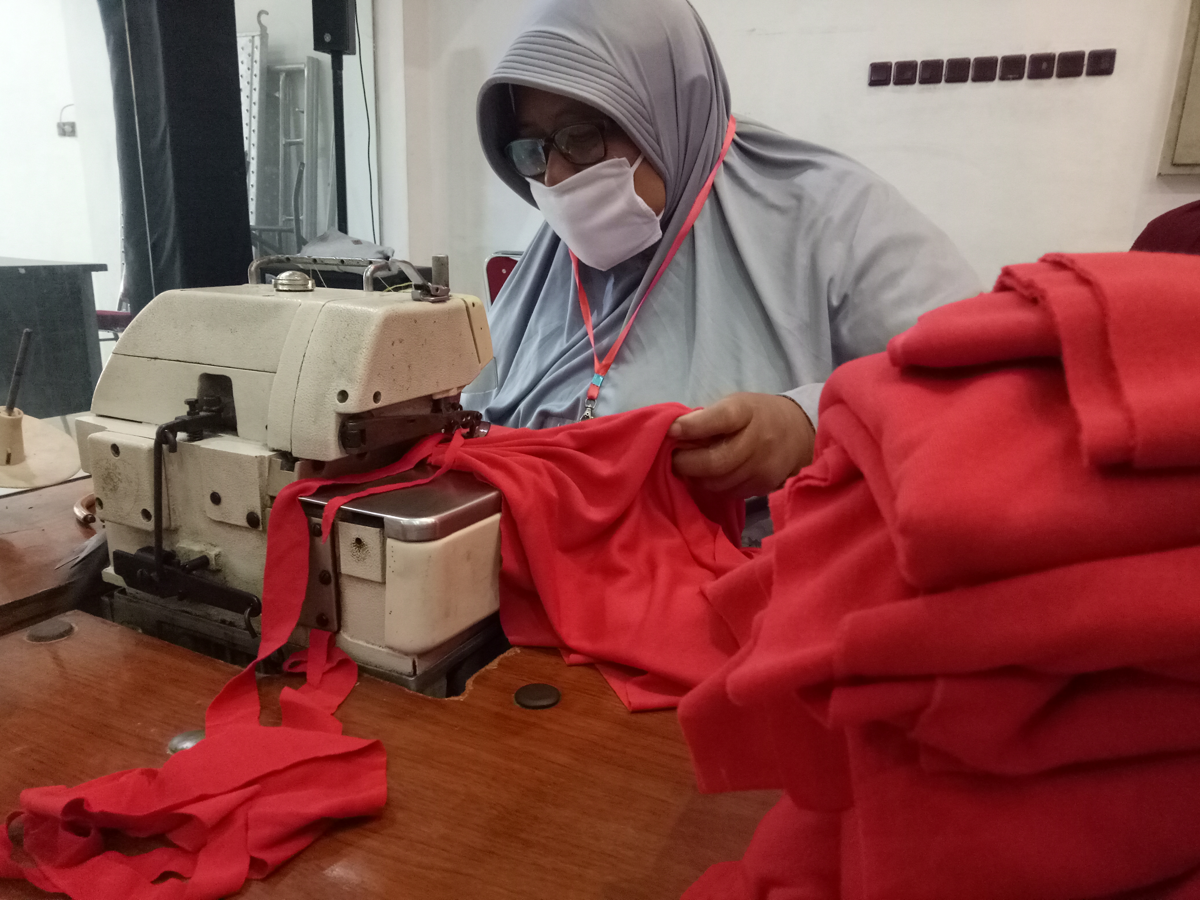 SR, Surabaya – DPD PDI Perjuangan Jawa Timur (Jatim) mengalihfungsikan aula menjadi tempat industri konveksi masker. Pekerjanya adalah puluhan penjahit rumahan yang ekonominya juga terdampak virus corona.