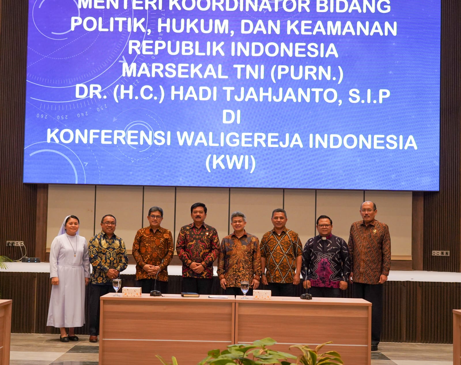 SR, Jakarta – Menteri Koordinator Bidang Politik, Hukum, dan Keamanan (Menko Polhukam) Marsekal TNI (Purn.) Hadi Tjahjanto melakukan kunjungan kerja ke kantor Persekutuan Gereja-Gereja di Indonesia (PGI) dan Konferensi Waligereja Indonesia (KWI) di Jakarta. Kunjungan ini untuk mengajak seluruh tokoh agama agar tetap menjaga situasi kondusif pasca Pemilihan Presiden dan Wakil Presiden, serta Pemilihan Legislatif (Pileg) pada 14 Februari lalu.