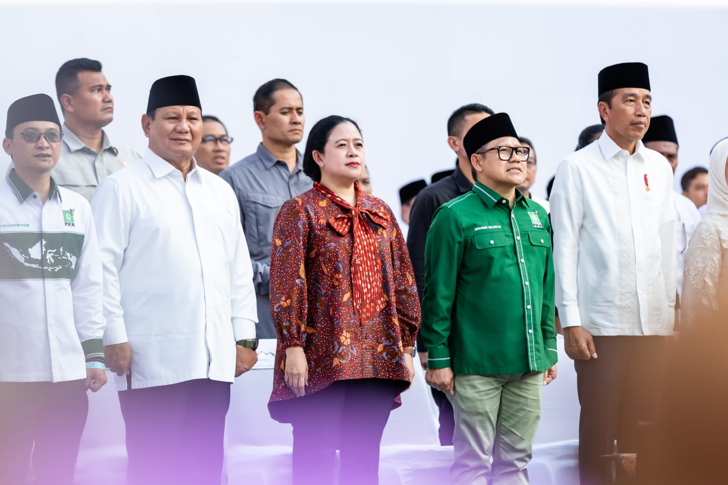 Sambil menunggu acara dimulai, Puan sempat berbincang-bincang dengan Presiden Jokowi dan para ketum parpol. Saat acara dimulai, Puan duduk di atas podium sederet dengan Presiden Jokowi serta diapit oleh Ketum PKB Muhaimin Iskandar (Cak Imin) dan Prabowo.