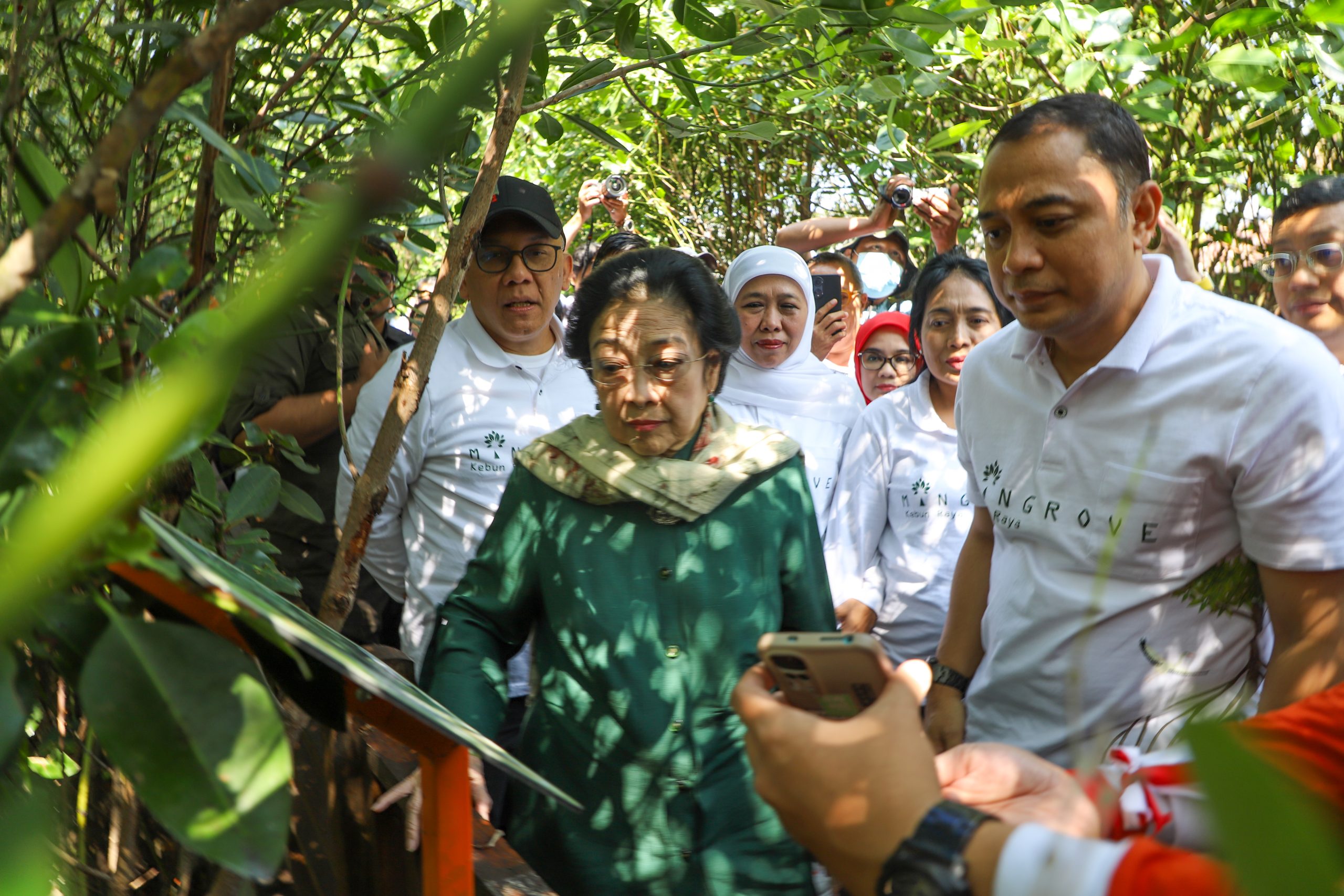 “Sesuai arahan dari Bu Mega tadi, kami akan menjalankan mangrove ini bukan hanya sekadar tempat mangrove, tapi sebagai edukasi dan pariwisata. Khususnya bagi anak – anak muda, karena mereka butuh mengenal pendidikan tentang alam,” sambung Eri.
