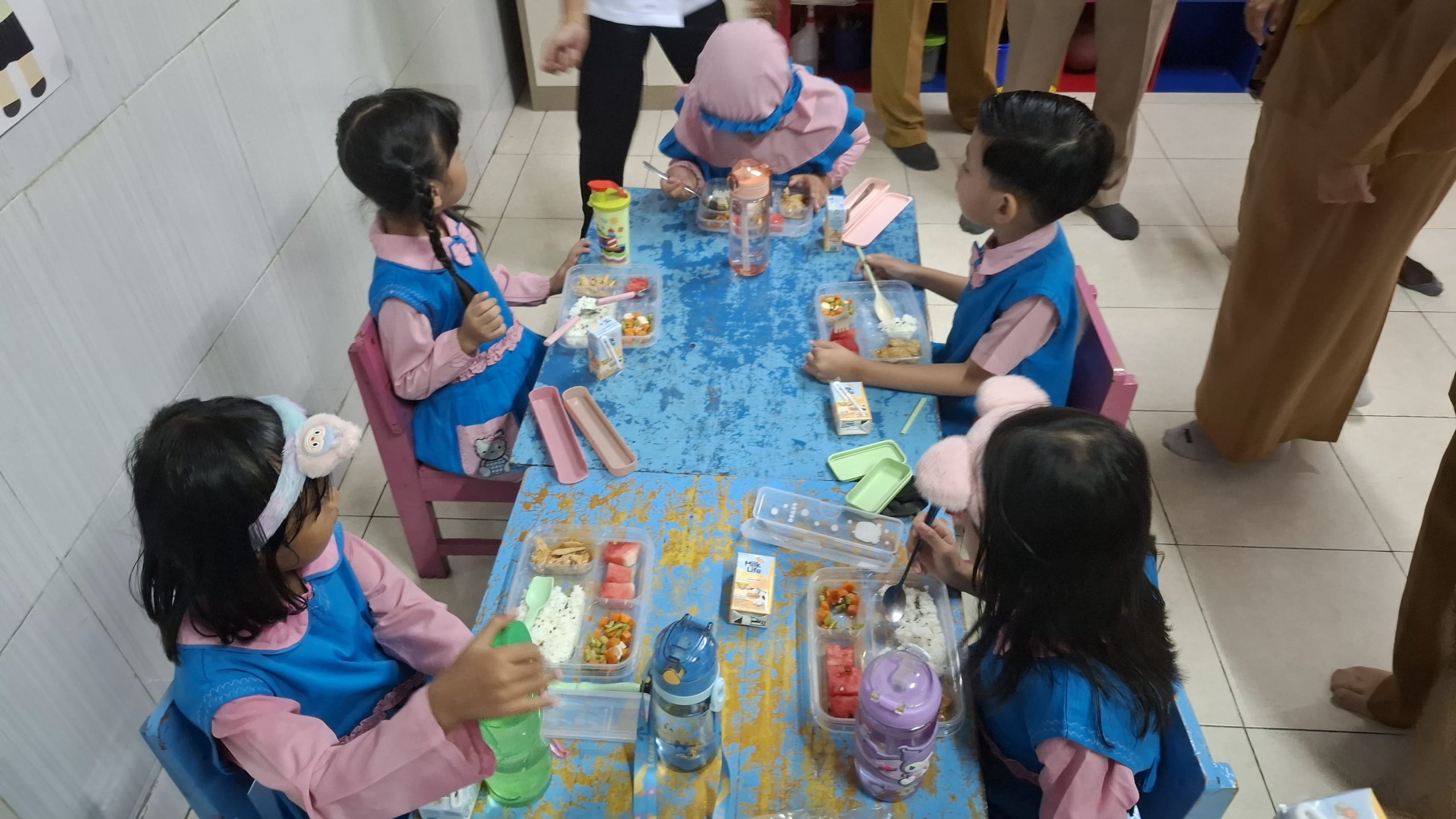 “Kalau dari sekolah sudah kami adakan tapi sebulan sekali, kami jadwal makan jam 8 pagi sesuai arahan bahwa anak di awal pembelajaran sudah harus makan,” ujarnya.