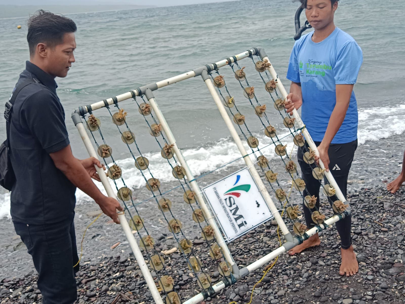 SR, Banyuwangi – Lembaga Manajemen Infaq (LMI) mengadakan aksi konservasi terumbu karang di Pantai Sengkong, Desa Bangsring, Kecamatan Wongsorejo, Banyuwangi, Sabtu (21/12/2024). Program yang bekerjasama dengan PT Sarana Multi Infrastruktur (SMI) diharapkan semakin menghidupkan ekosistem laut yang ada di Banyuwangi.