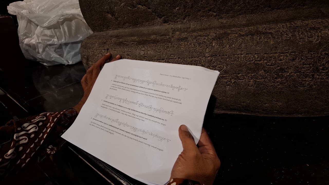 Lebih lanjut terkait isi prasasti yang bertanggal 21 November 1289 M atau 1211 Saka itu, pihaknya mendatangkan beberapa narasumber. Salah satunya Iwan Prasetyo, seorang pegawai swasta yang telah lama menjadi penggiat aksara.