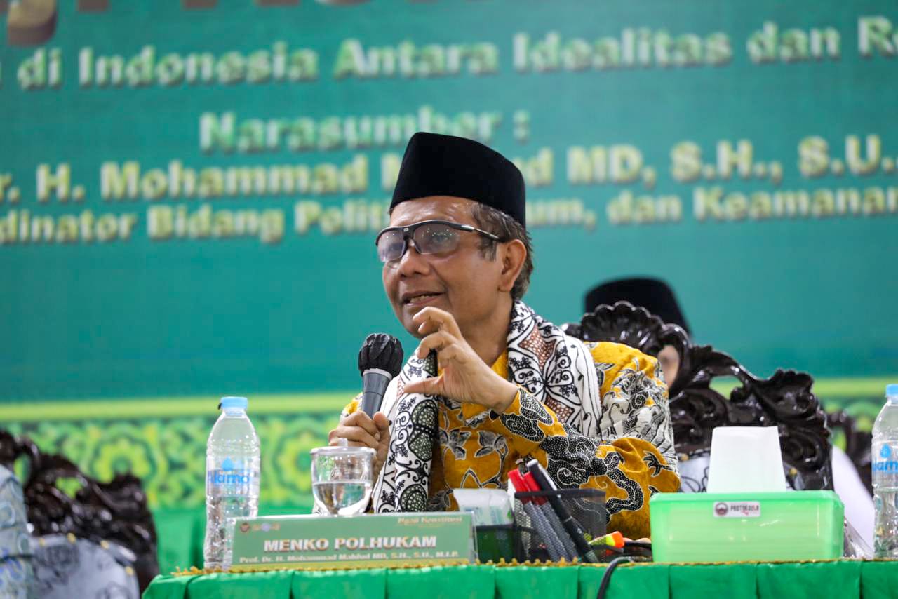 SR, Situbondo – Menteri Koordinator Bidang Politik, Hukum dan Keamanan (Menko Polhukam) Mahfud MD menyampaikan, orang sering membenturkan hukum nasional dan hukum Islam. Padahal hukum-hukum nasional di Indonesia salah satunya bersumber dari hukum islam, dan semua prinsip-prinsip hukum nasional sudah lama ada di hukum Islam.
