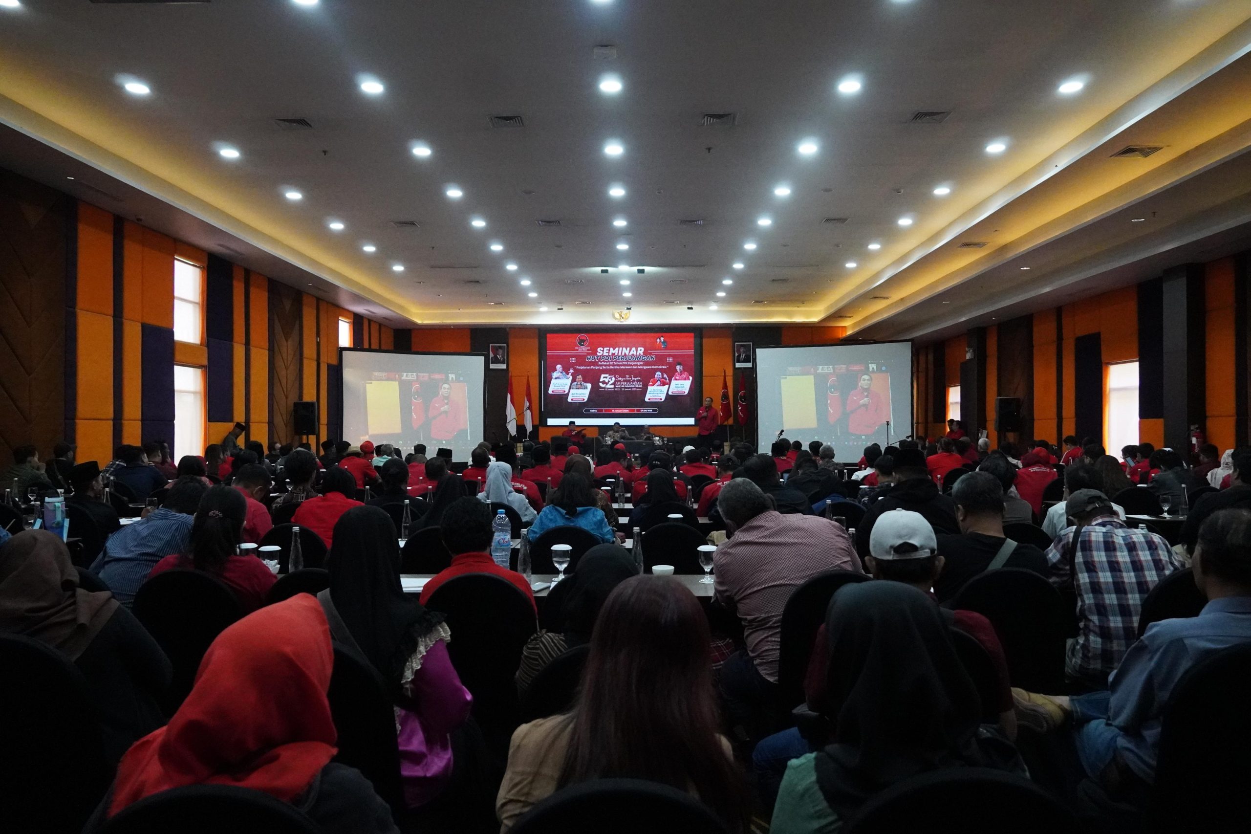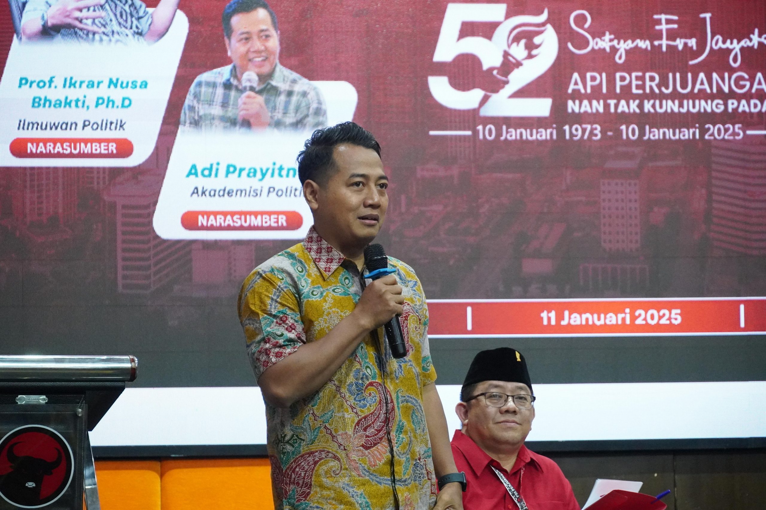 SR, Surabaya – Pengamat Politik Adi Prayitno menyakini PDI Perjuangan masih menjadi partai besar yang harus diperhitungkan di 2029. Hal tersebut ia sampaikan saat menjadi pembicara pada Seminar HUT PDI Perjuangan : Refleksi 52 Tahun PDI Perjuangan “Perjalanan Panjang Serta Berliku Merawat dan Mengawal Demokrasi” di Grand Mercure Surabaya, Sabtu (11/1/2025).