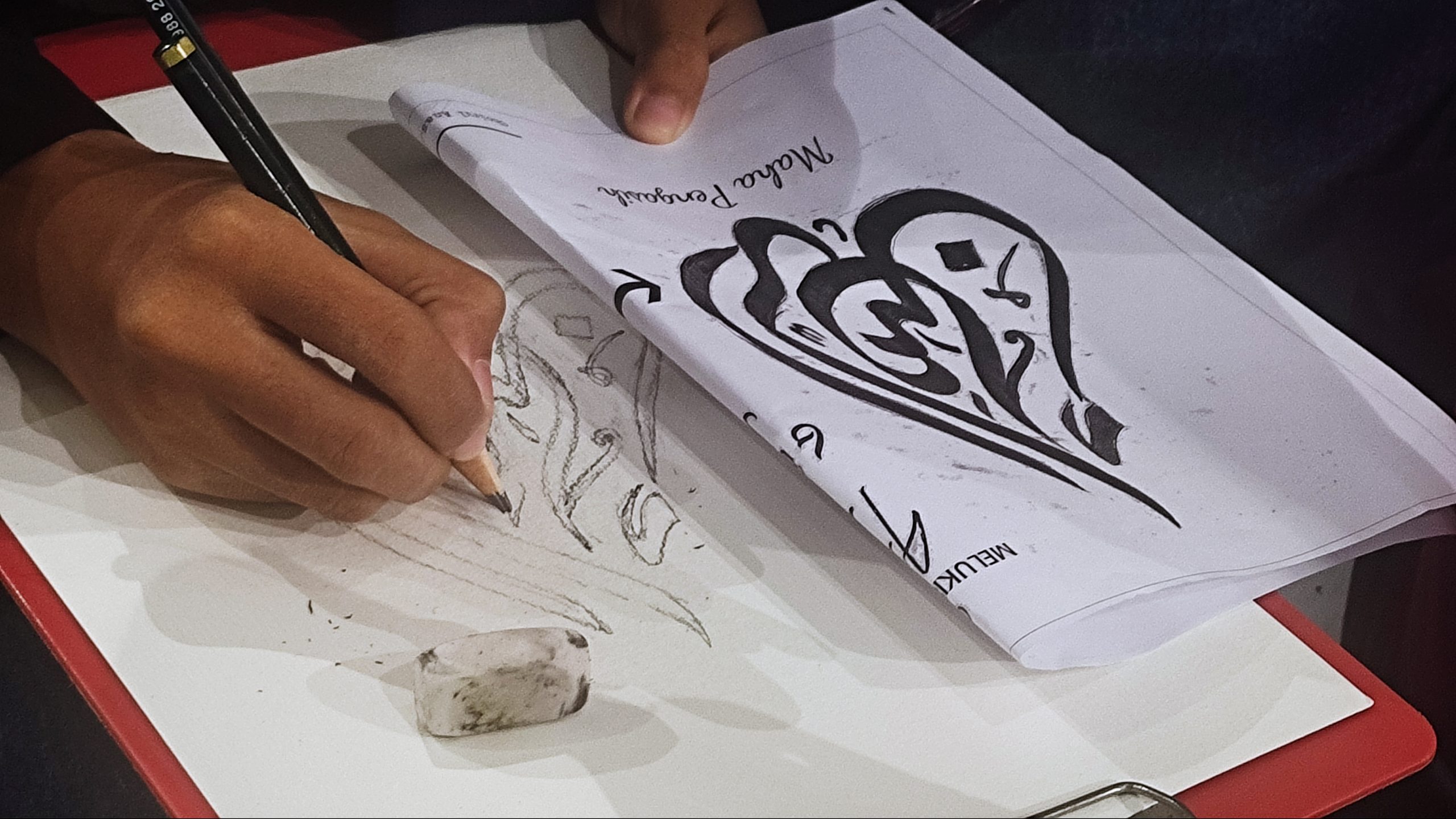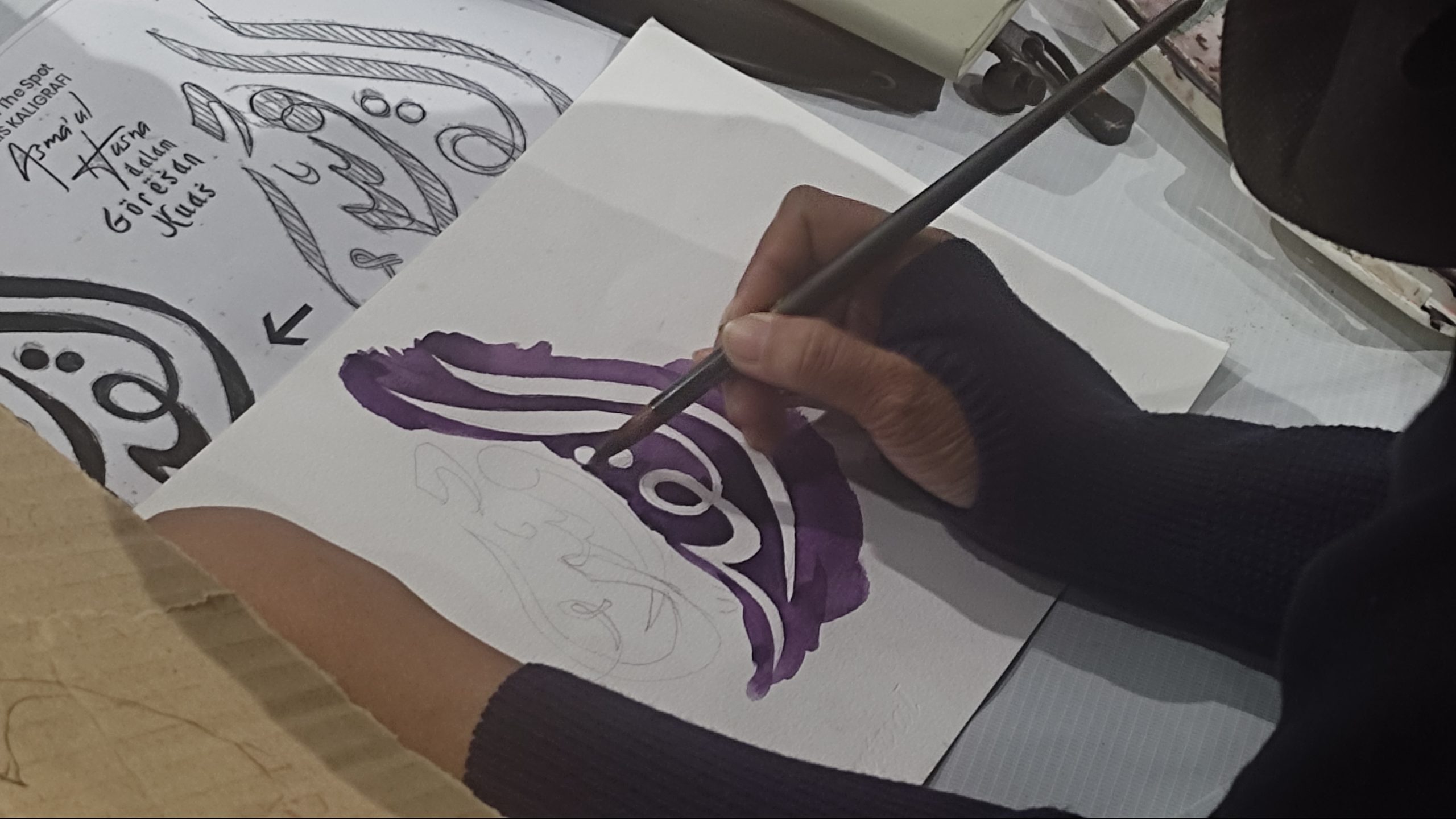 “Kali ini kita belajar membuat Kaligrafi Diwanijali. Sebenarnya ada lebih dari 50 jenis kaligrafi, namun ada 7 jenis yang umum. Kita pilih Kaligrafi Diwanijali karena sifatnya yang fleksibel dan tidak kaku, lentur dan mudah dibentuk, lalu lebih banyak diaplikasikan dalam bentuk lukisan,” ujar pria yang telah belajar belasan tahun di Sekolah Kaligrafi (SaKal) Jombang ini.