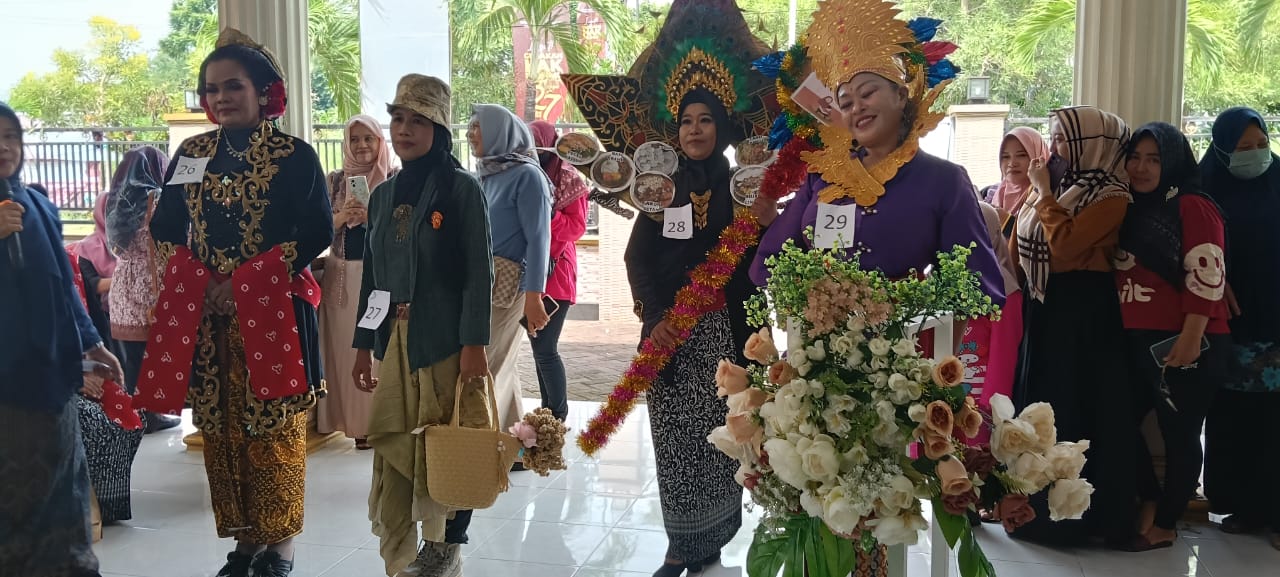 “Gunungan wayang itu simbol kehidupan, bulu merak itu simbol ketangguhan dan kekuatan, kemudian foto masakan khas Jawa Timur itu simbol kekayaan budaya kuliner nusantara,” papar ketua PKK RT 33 menjelaskan konsep fashion yang ditampilkan oleh wakilnya.