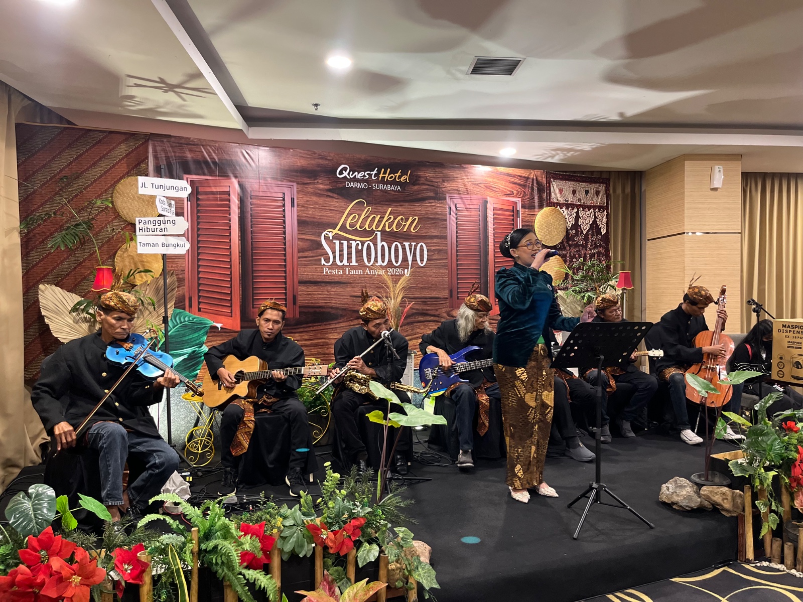 “Melalui tema Lelakon Suroboyo – Pesta Taun Anyar 2026, kami ingin menghadirkan pengalaman Tahun Baru yang berbeda, tidak hanya meriah tetapi juga sarat akan nilai budaya dan nostalgia Surabaya Tempo Doeloe. Kami berharap perayaan ini dapat menjadi momen berkesan bagi keluarga, sahabat, maupun pasangan yang merayakan Tahun Baru bersama kami,” ujar Arditha Dewantari, General Manager Quest Hotel Darmo Surabaya, dalam rilis yang diterima redaksi Kamis (1/1/2026)