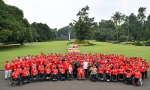 SR, Bogor – Presiden Joko Widodo bersilaturahmi dengan para atlet Indonesia yang berlaga di Asian Para Games 2018, di Istana Kepresidenan Bogor, Jawa Barat, Sabtu (13/10/2018). Presiden Joko Widodo mengatakan, dirinya telah melihat dedikasi dan kerja keras para atlet disabilitas Indonesia, sejak dari tempat latihan, di Solo maupun di Jakarta.