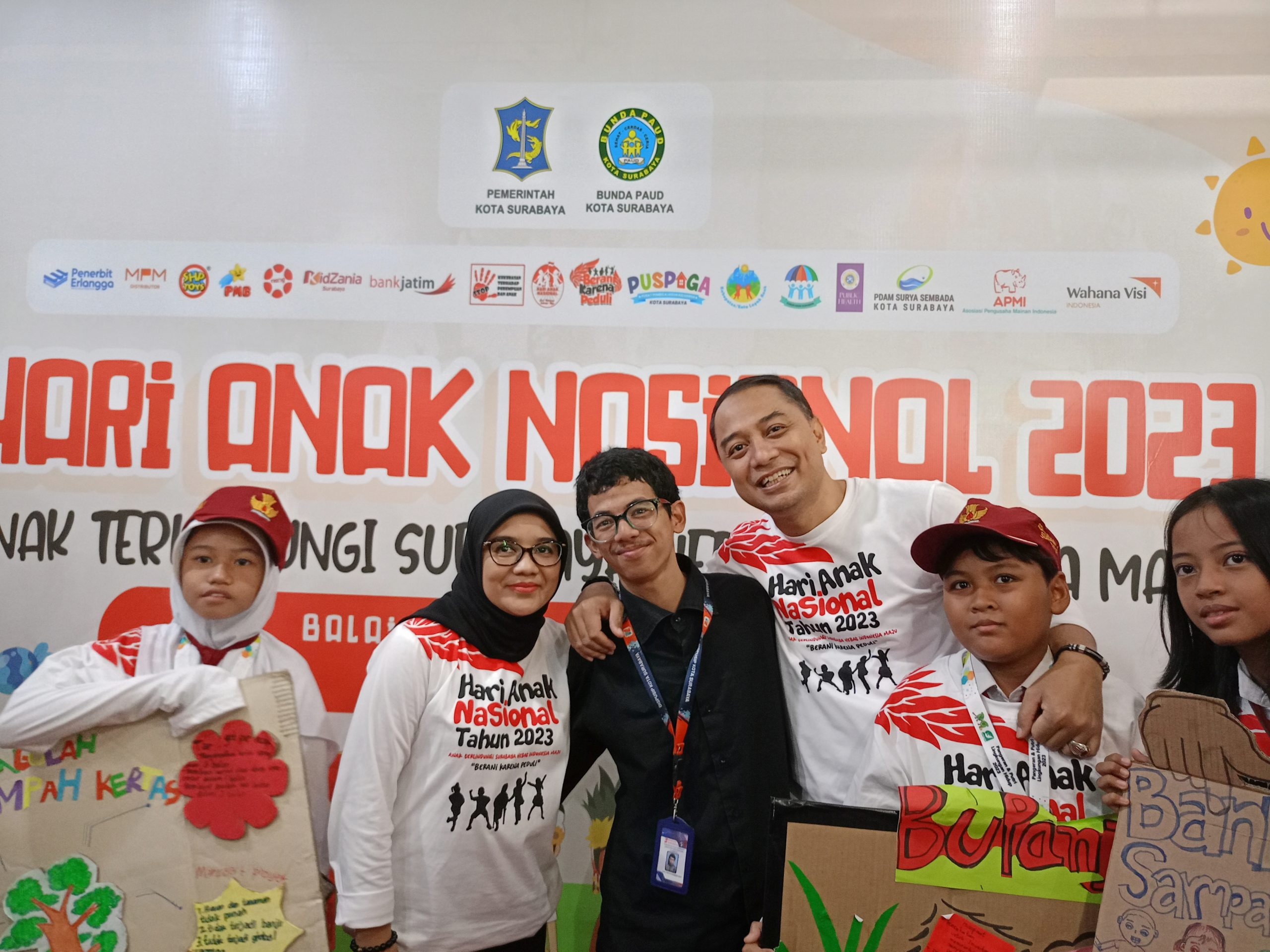 Wali Kota Eri Cahyadi tak sendiri, turut hadir di tengah-tengah ribuan anak bersama jajaran DPRD Kota Surabaya, Ketua Komisi Perlindungan Anak Indonesia (KPAI) Maryati Solihah, Bunda Paud Kota Surabaya Rini Indriyani hingga Kepala Perangkat Daerah (PD) di lingkungan Pemkot Surabaya.