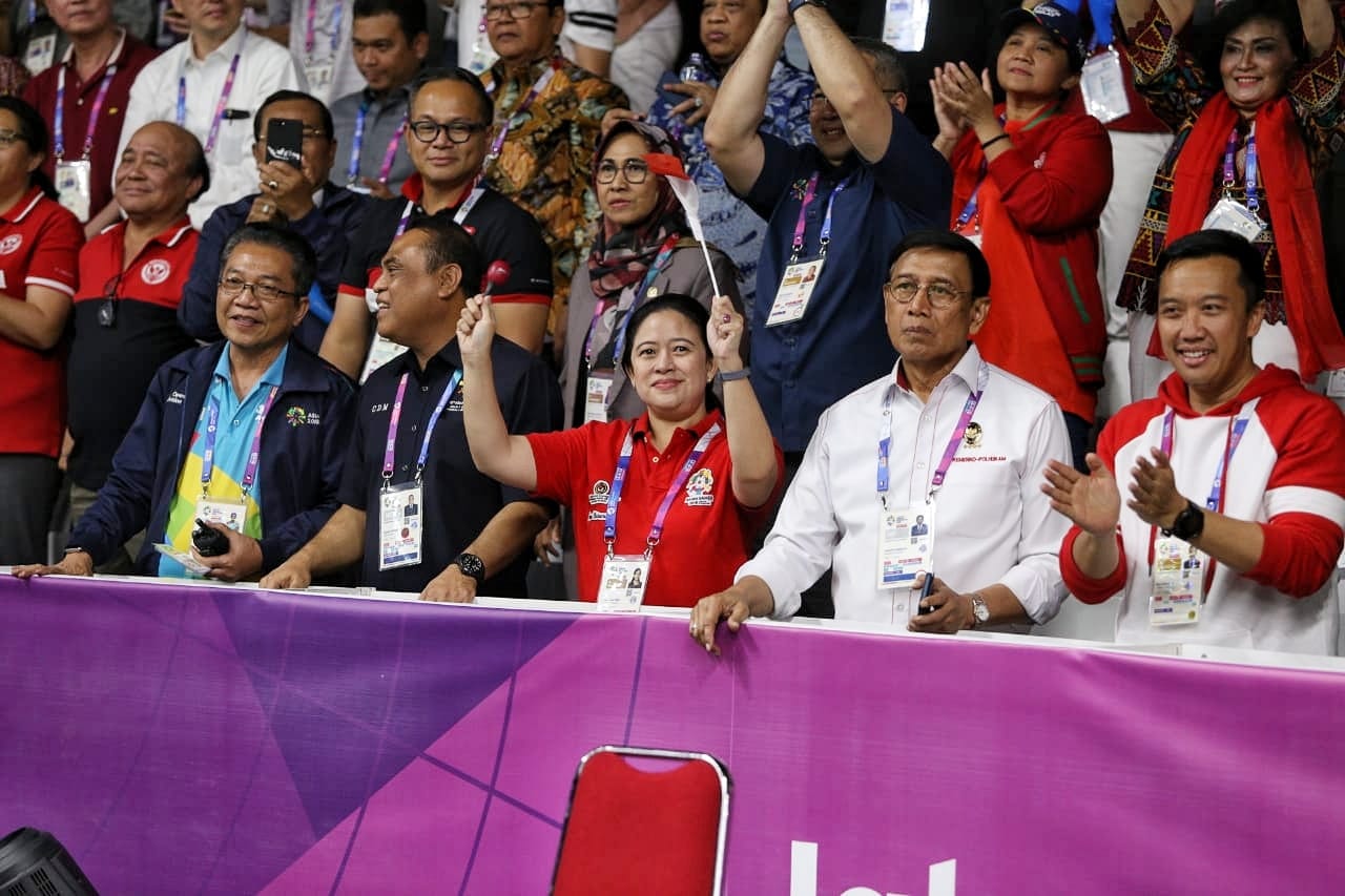 Menko PMK, Puan Maharani Turut Menyaksikan Langsung Laga Final Badminton di Istora Senayan, Jakarta. Foto : (Super Radio/Nina Suartika)