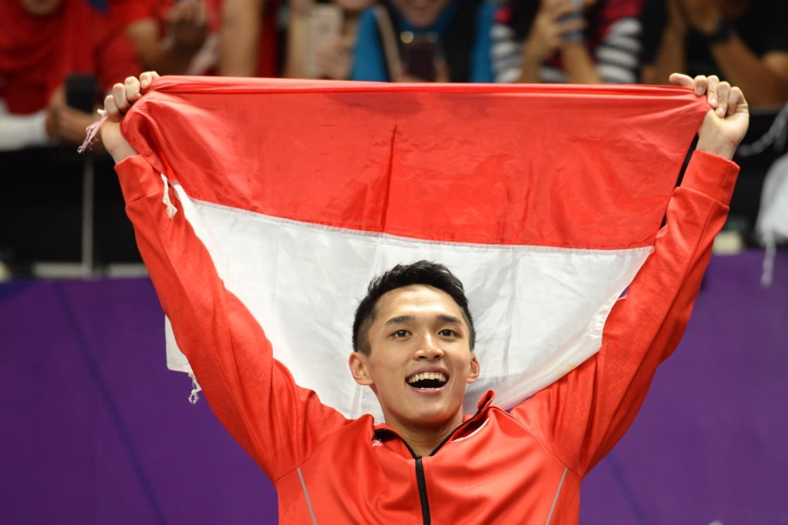 Tunggal Putra Indonesia, Jonatan Christie Berhasil Meraih Medali Emas di Asian Games 2018. Foto : (Super Radio/Nina Suartika)