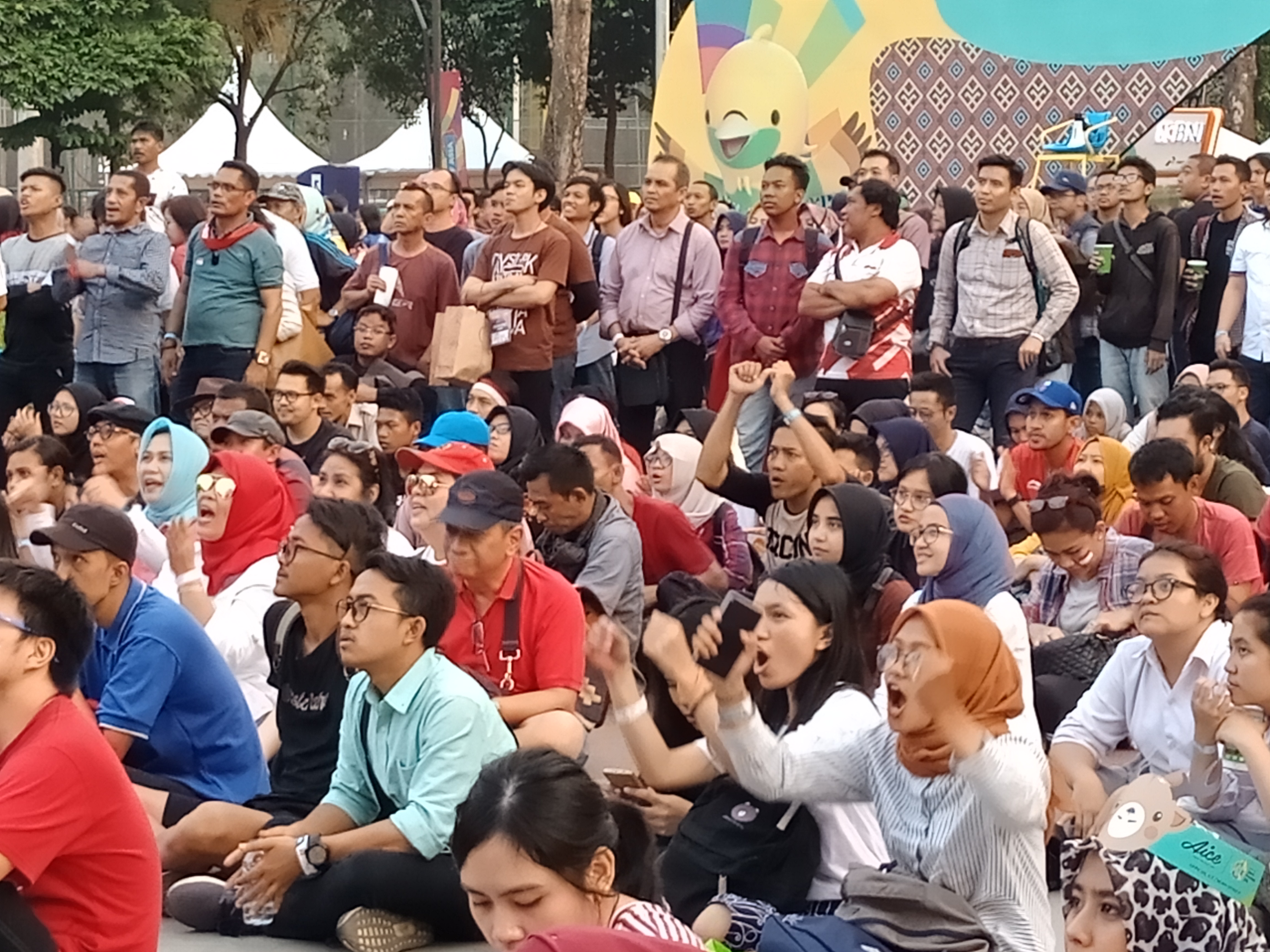 Suasana Nobar di Kawasan Istora Senayan, Jakarta. Foto : (Super Radio/Nina Suartika)