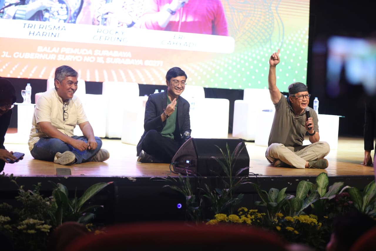 “Jadi ini kota yang punya masa depan. Kita juga ingat Surabaya adalah kota intelektual yang diasuh HOS Tjokroaminoto. Kita lihat bagaimana kelengkapan Surabaya dirawat dari segala aspek. Kita bisa membentuk republik yang sudah hancur ini dari Surabaya,” kata Rocky.