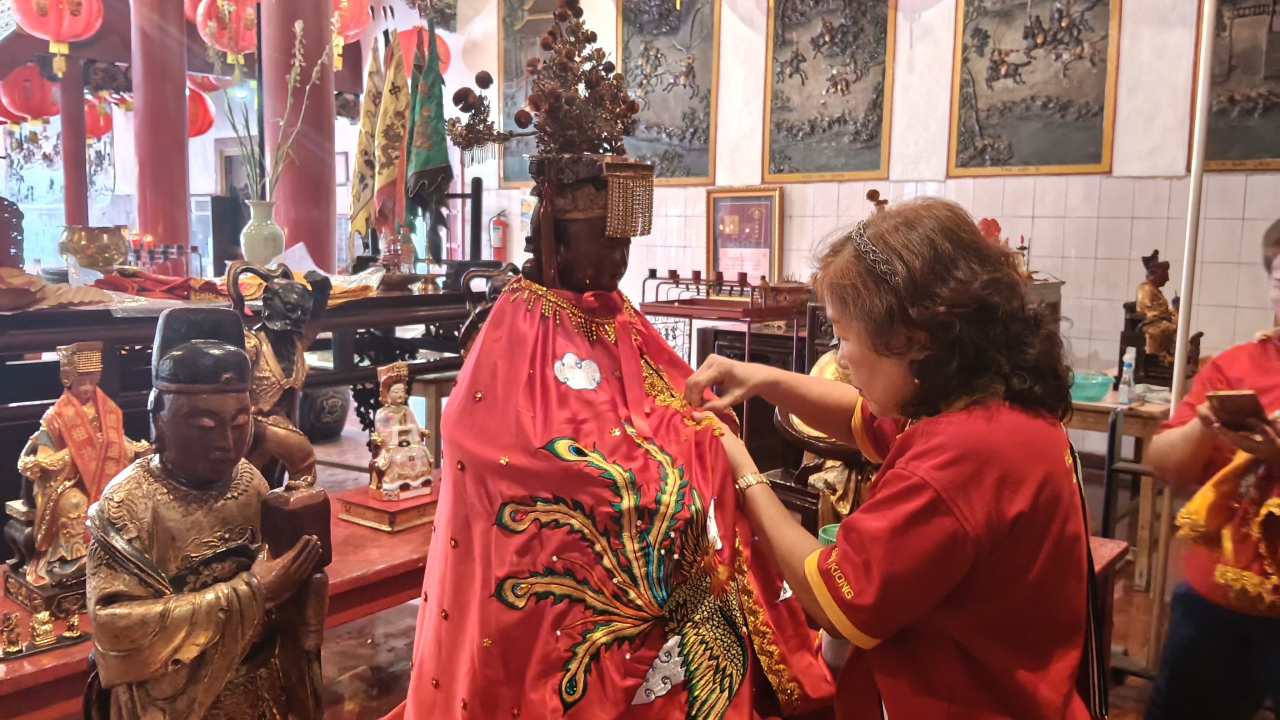 Tidak hanya itu, altar dewa-dewi, perlengkapan Tjiam Sie, dan pernak-pernik lainya ikut dibersihkan hingga bersih.