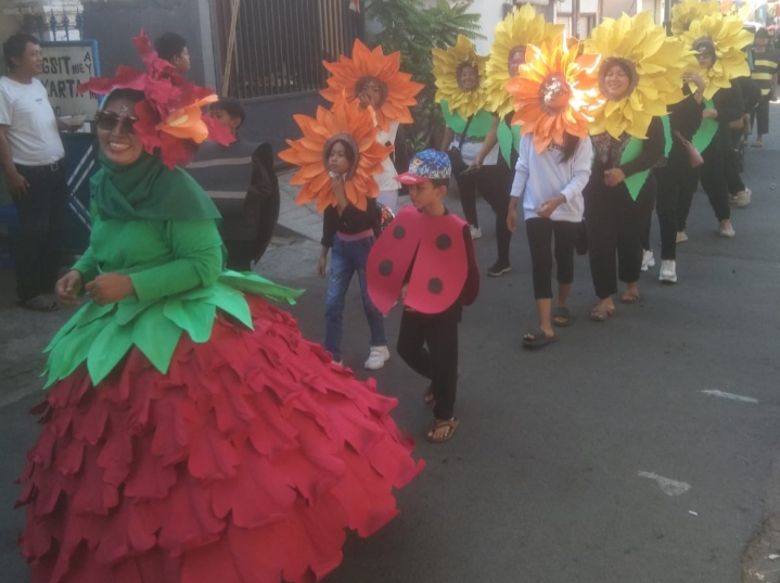 Karang taruna RW IX menunjukkan cinta tanaman cinta lingkungan dalam kirab budaya Sedekah Bumi Krukah Lama RW IX (foto:aji saka/superradio.id)
