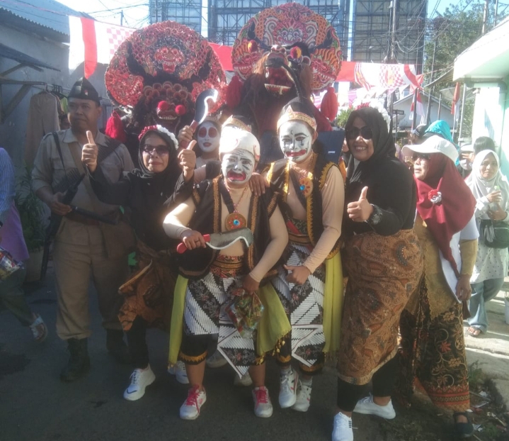 Ibu-ibu PKK mengenakan kostum punakawan ikut meriahkan kirab budaya Sedekah Bumi Krukah Lama RW IX (foto:aji saka/superradio.id)