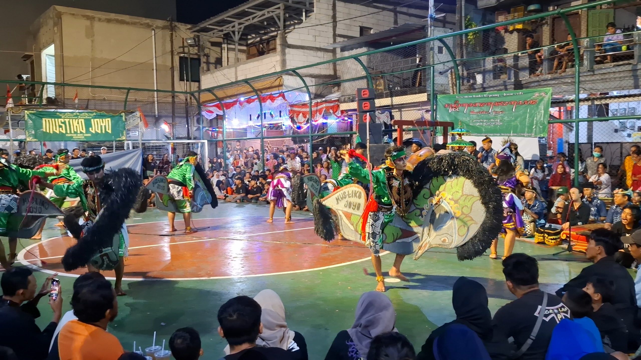 Pentas jaranan Musiko Joyo di lapangan futsal RW IX menyedot ratusan penonton. (foto:hamidiah kurnia/superradio.id)