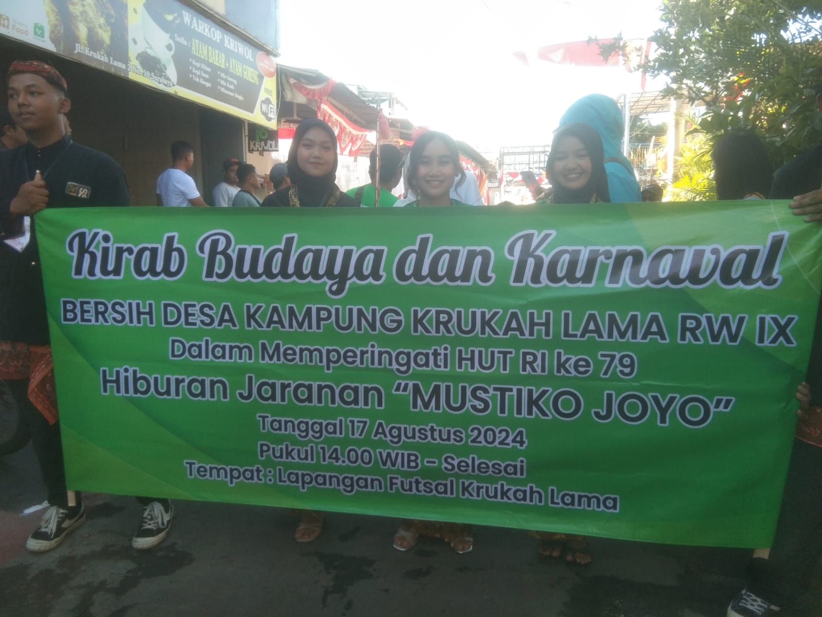SR, Surabaya – Warga RW IX Krukah Lama Surabaya menggelar sedekah bumi di sela peringatan HUT ke 79 RI, Sabtu (17/8/2024). Sedekah Bumi ini dilaksanakan setelah 13 tahun vakum.