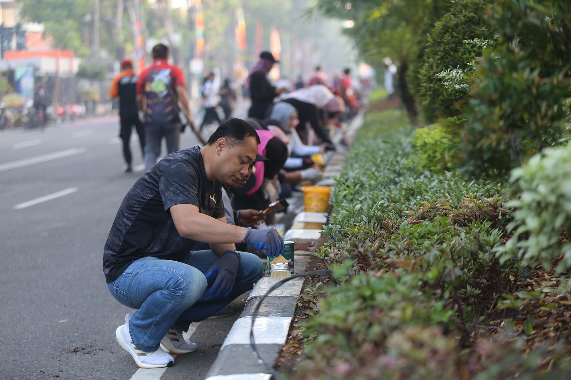 Kerja bakti dimulai sejak pukul 06.00 WIB dan dilakukan secara serentak, dengan melakukan pengecatan curbing di 51 ruas jalan. Tujuannya, untuk memperjelas curbing median jalan yang sudah pudar, sehingga pengendara bisa melihat pembatas jalan dengan lebih jelas.
