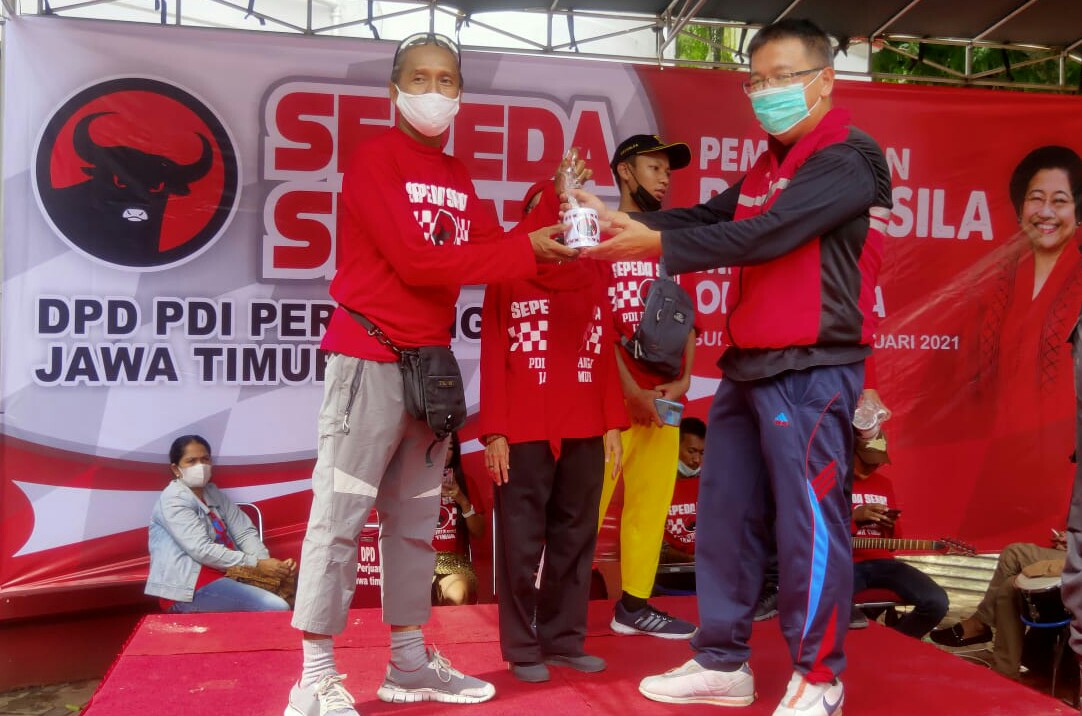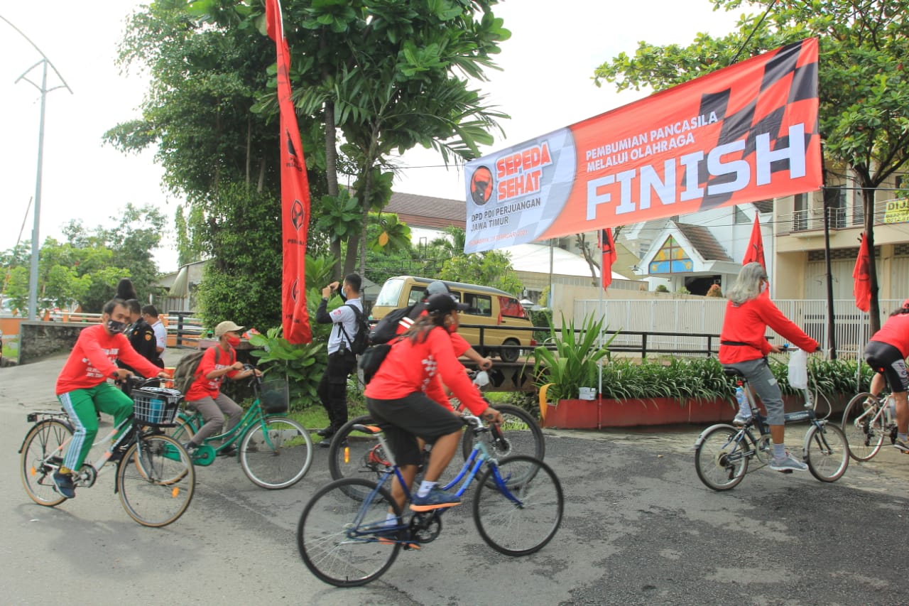 Ketua Panitia Sepeda Sehat DPD PDI Perjuangan Jatim, Eddy Tarmidi menambahkan, kegiatan yang digelar serentak se-Indonesia ini bertujuan untuk menjaga kesehatan para kader agar tetap bugar di tengah pandemi, sehingga bisa tetap melayani masyarakat, menjaga NKRI dan membumikan Pancasila.