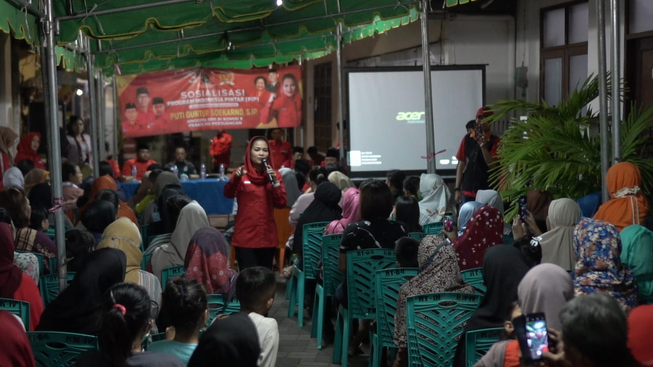 SR, Surabaya – Anggota Komisi X DPR RI, Puti Guntur Soekarno turun langsung membagikan ratusan beasiswa Program Indonesia Pintar (PIP) di daerah tempat lahir Bung Karno, Peneleh Surabaya, Jumat (21/7/2023) malam.